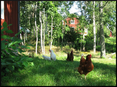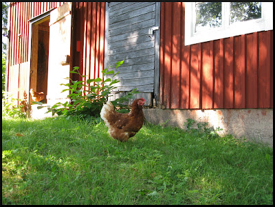 Va härligt för hönsen att få frigång på dagtid.