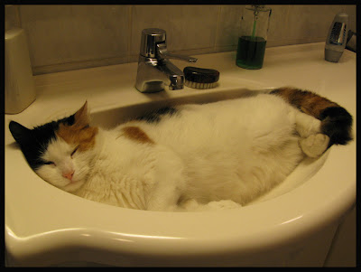 Trots att detta inte kändes som en tillåten sovplats för Lisa hade jag lite svårt att köra bort henne innan jag förevigat tillfället på bild.