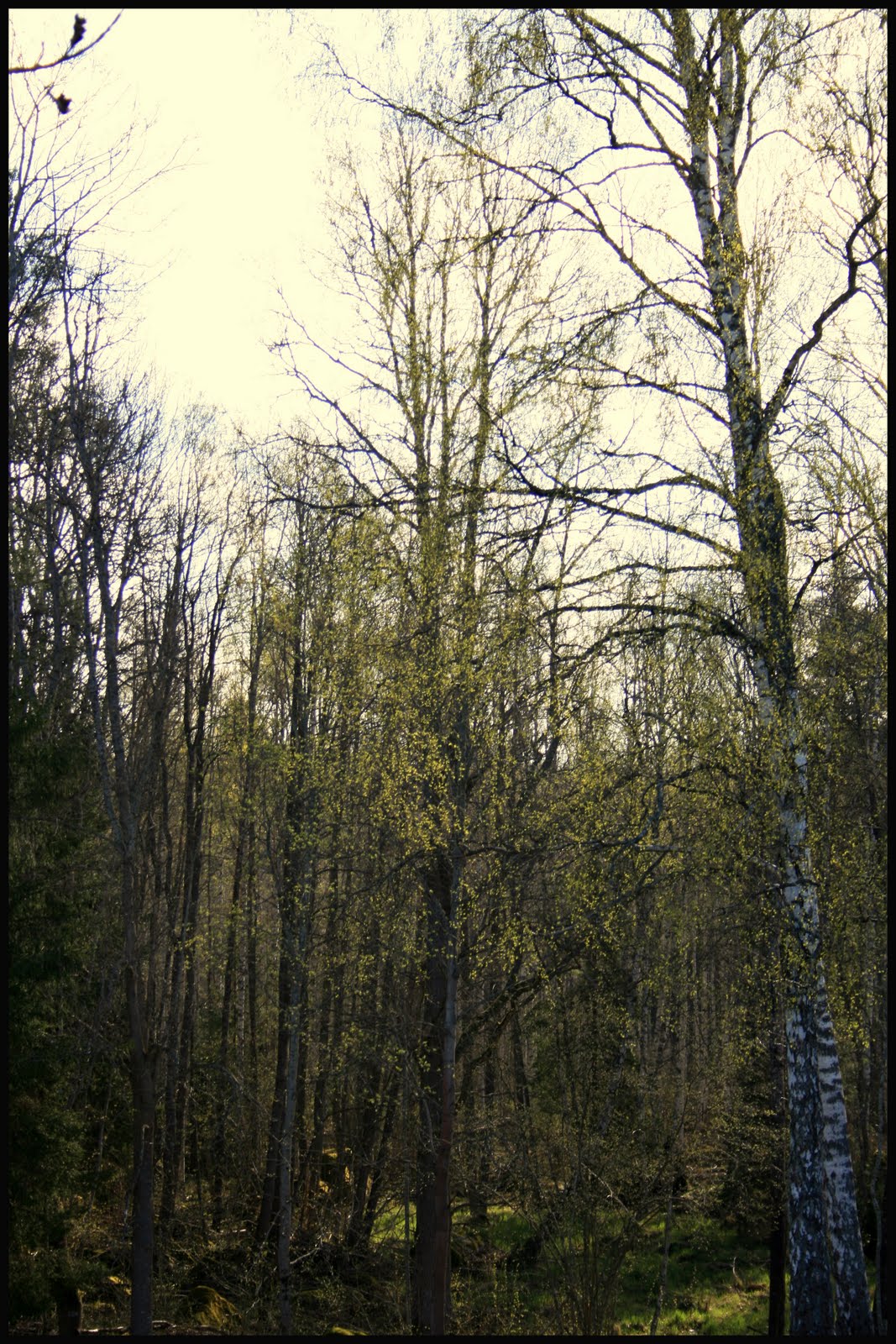 Idag vaknade jag till solsken och björkarna hade slagit ut lagom till första maj. Har aldrig tänkt på det tidigare att björkarna slår ut så plötsligt.