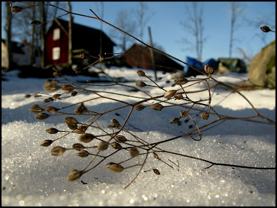 Idag kändes det som vår. Gårdagens blåsande hade tagit ordentligt på snön och jag kunde nästan röra mig fritt här ute och det var väldigt länge sedan nu.